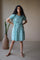 This dress features a soft and comfortable fit, with hand block printing on Mul Cotton fabric and shades of purple. It also includes a retro camper van print and convenient pockets.