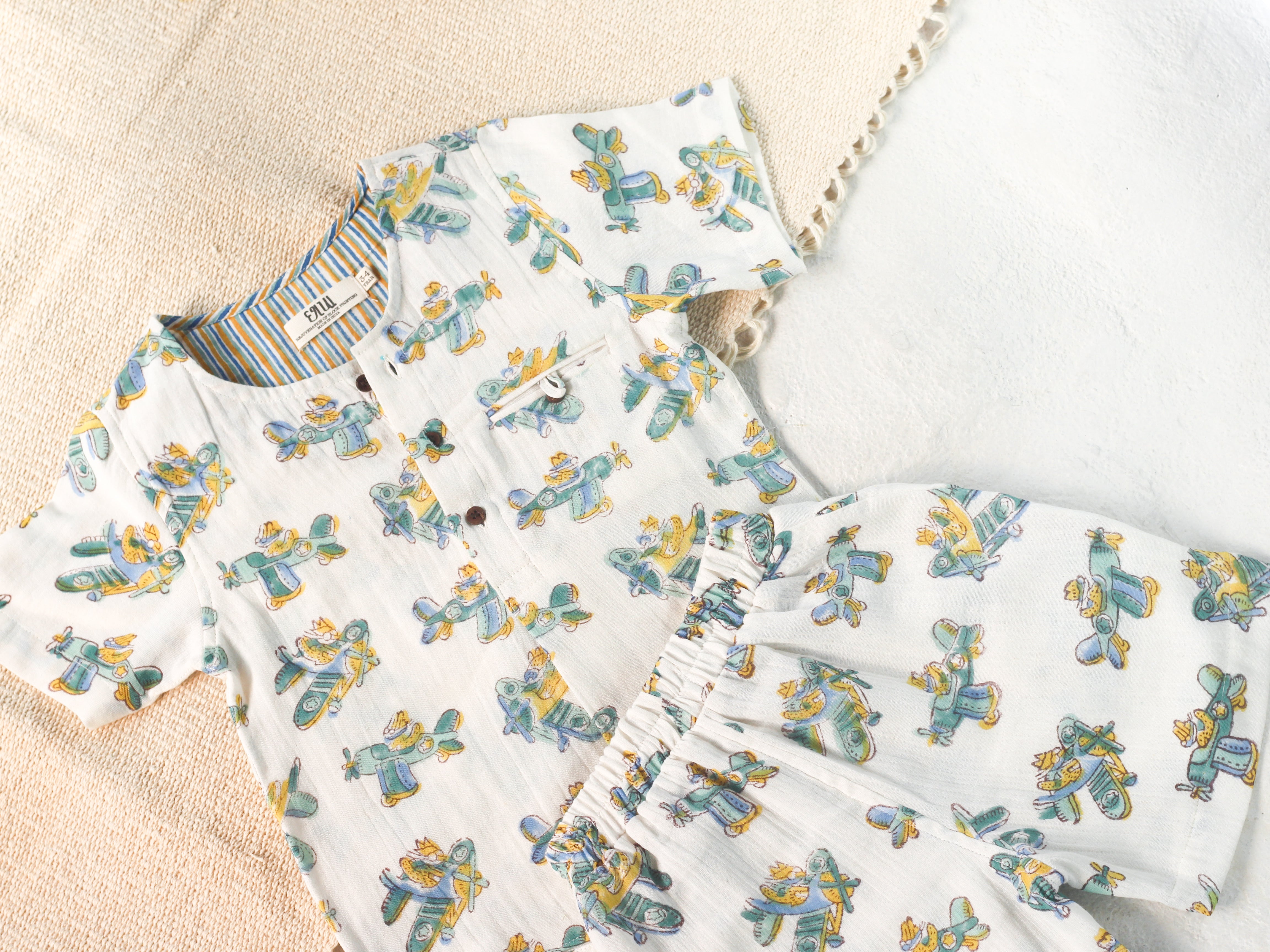 KIDS PLANE MUSLIN SHIRT & SHORT SET