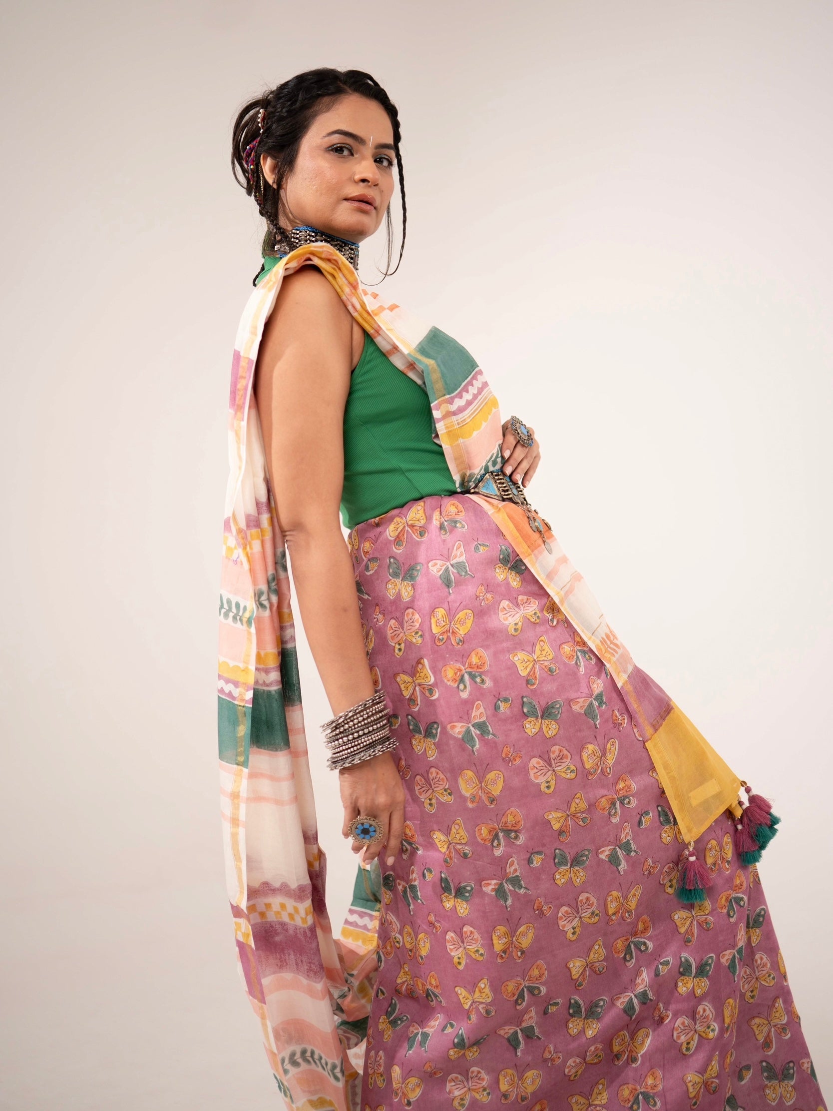 A celebration wrapped in fabric, Carnival is the saree for women who carry joy wherever they go. Crafted in luxurious Chanderi, this half-and-half drape brings together the soft charm of...