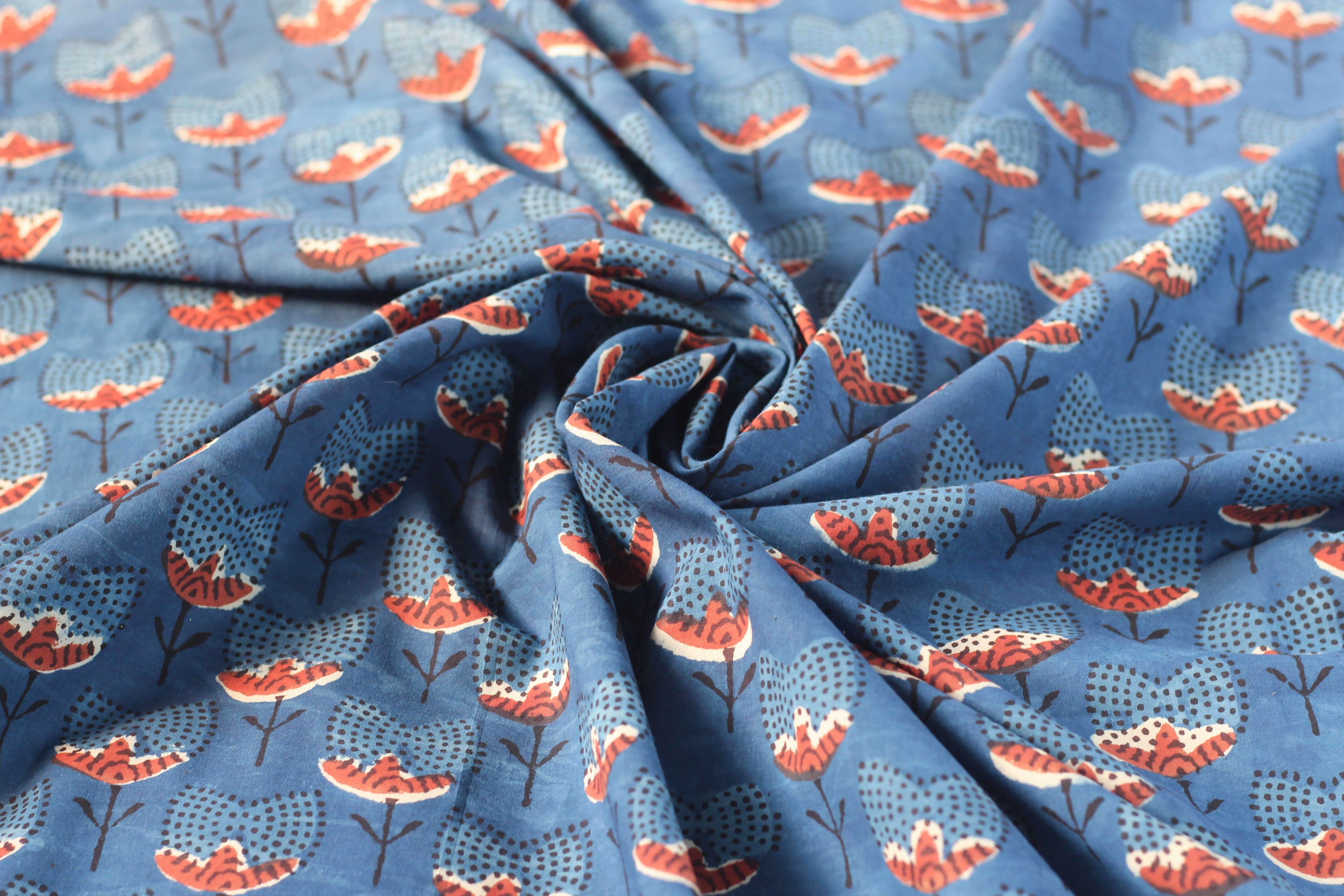 Fabric -Indigo Flowers