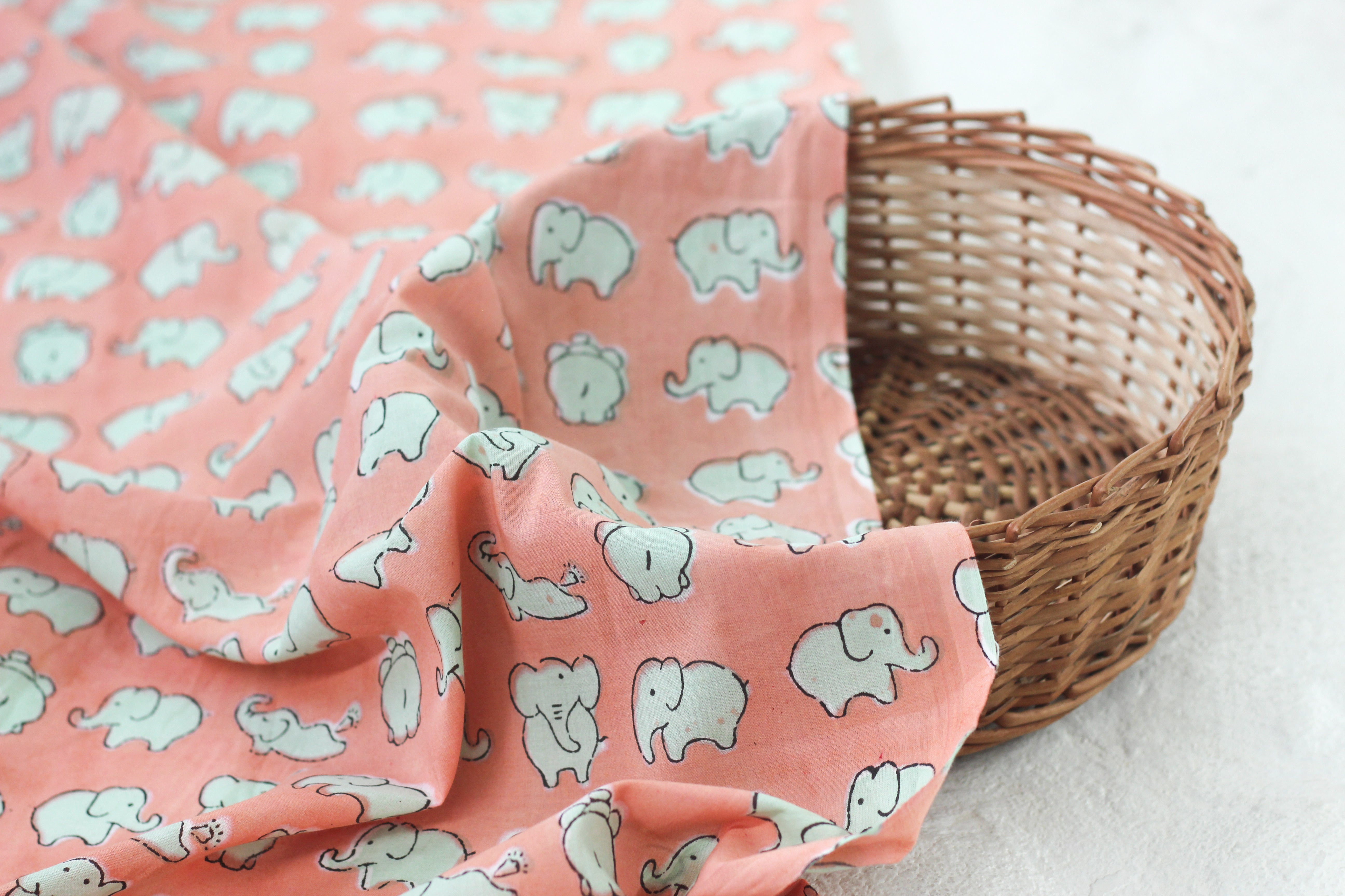 Fabric -Elephants in Peach