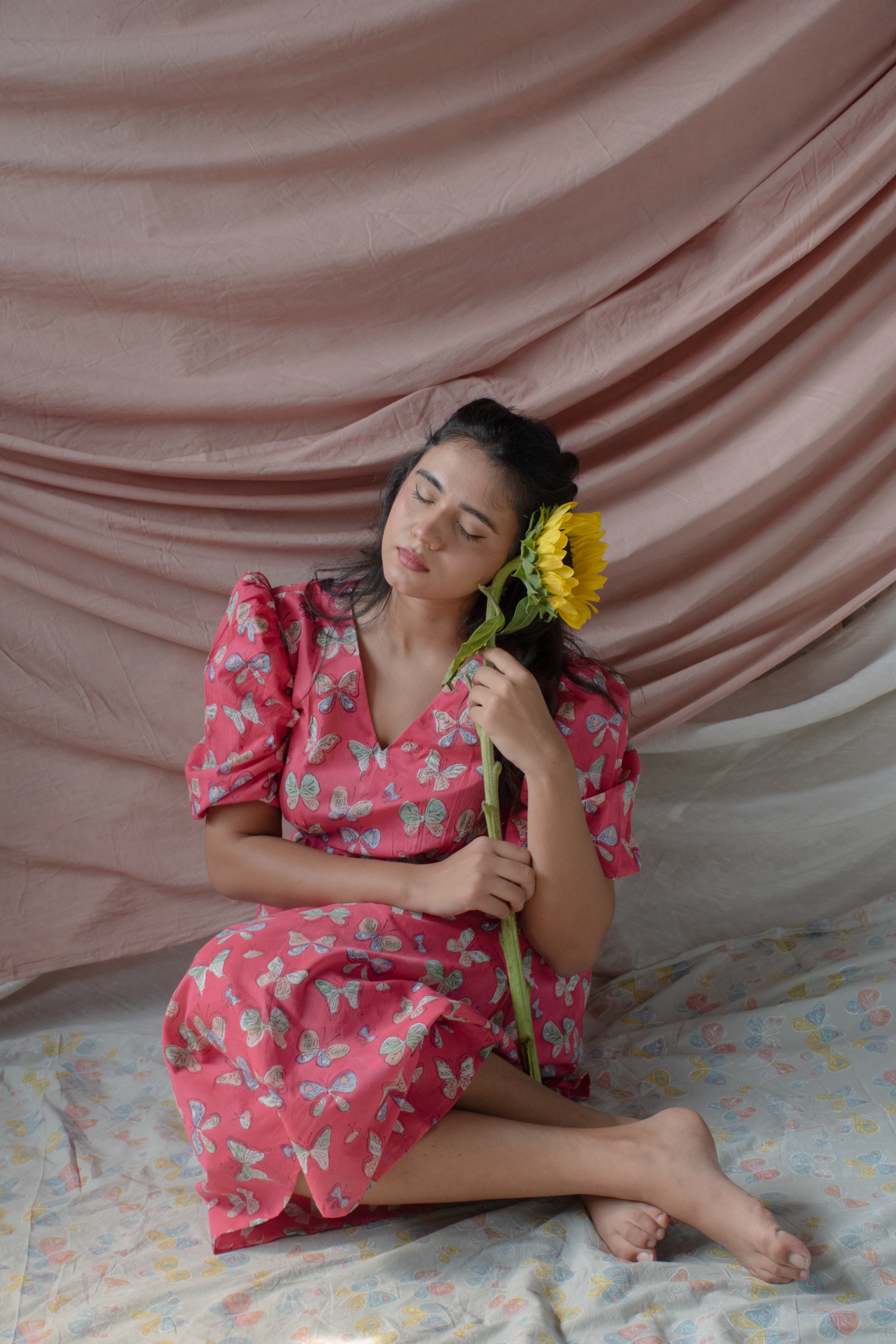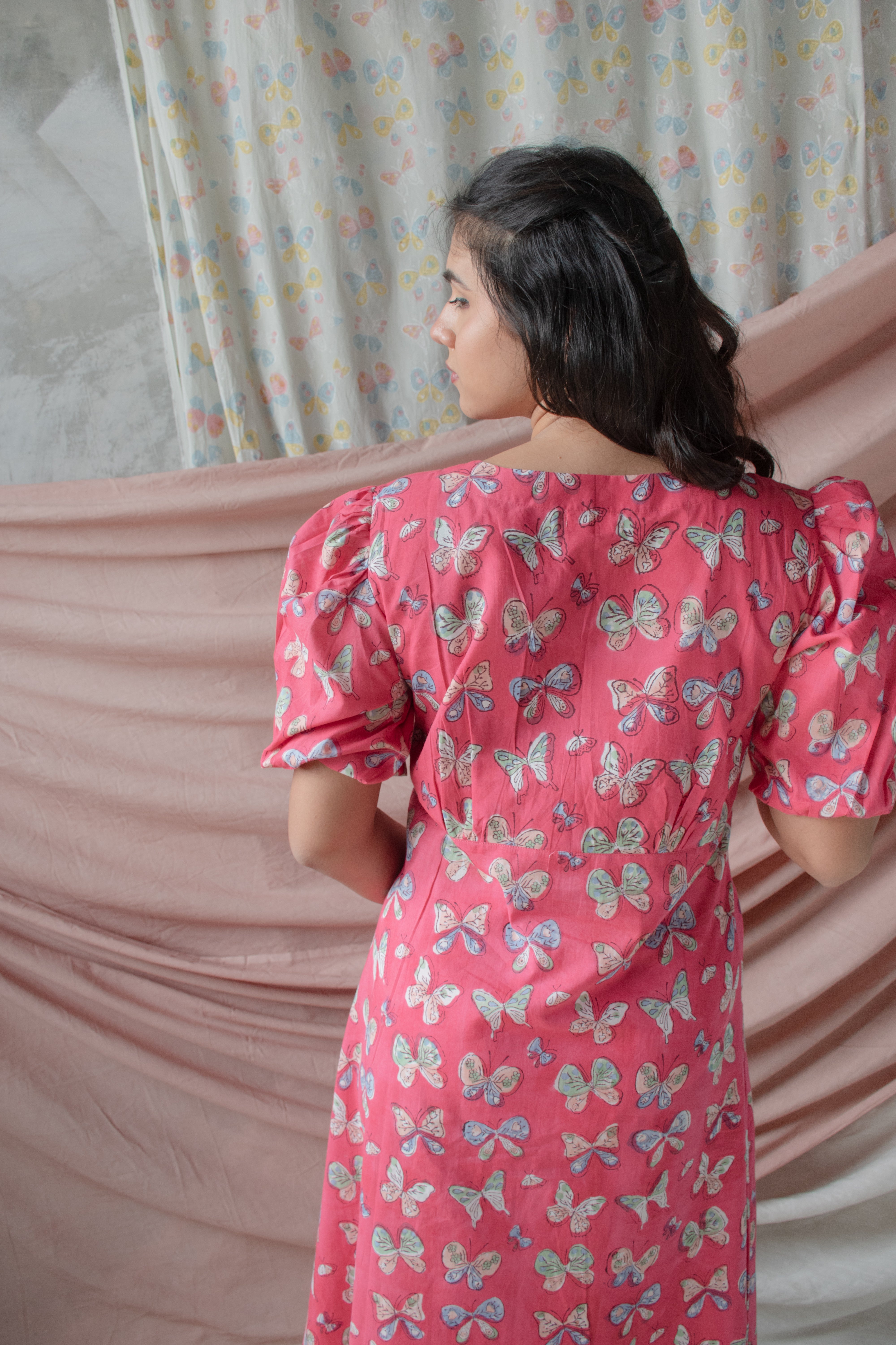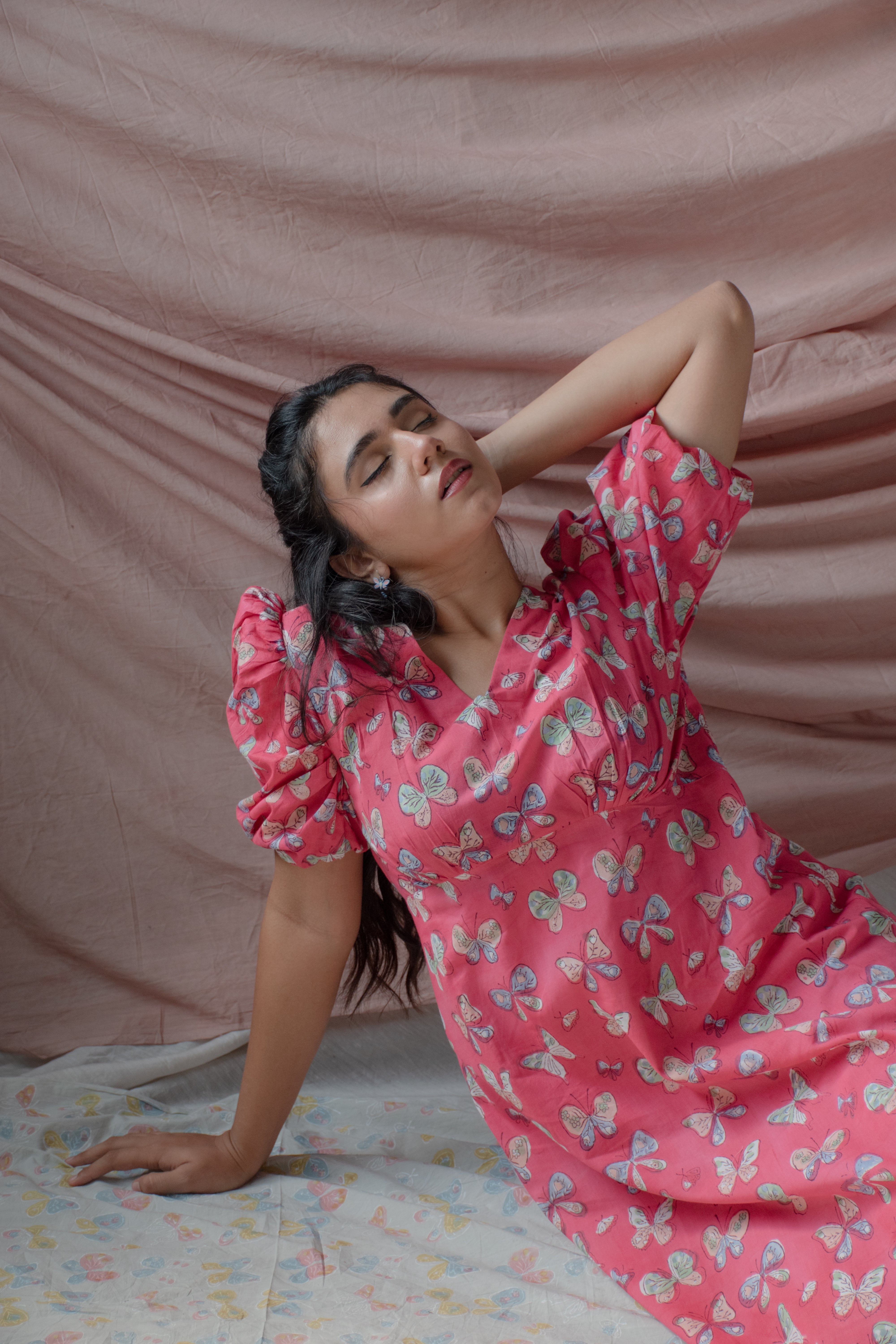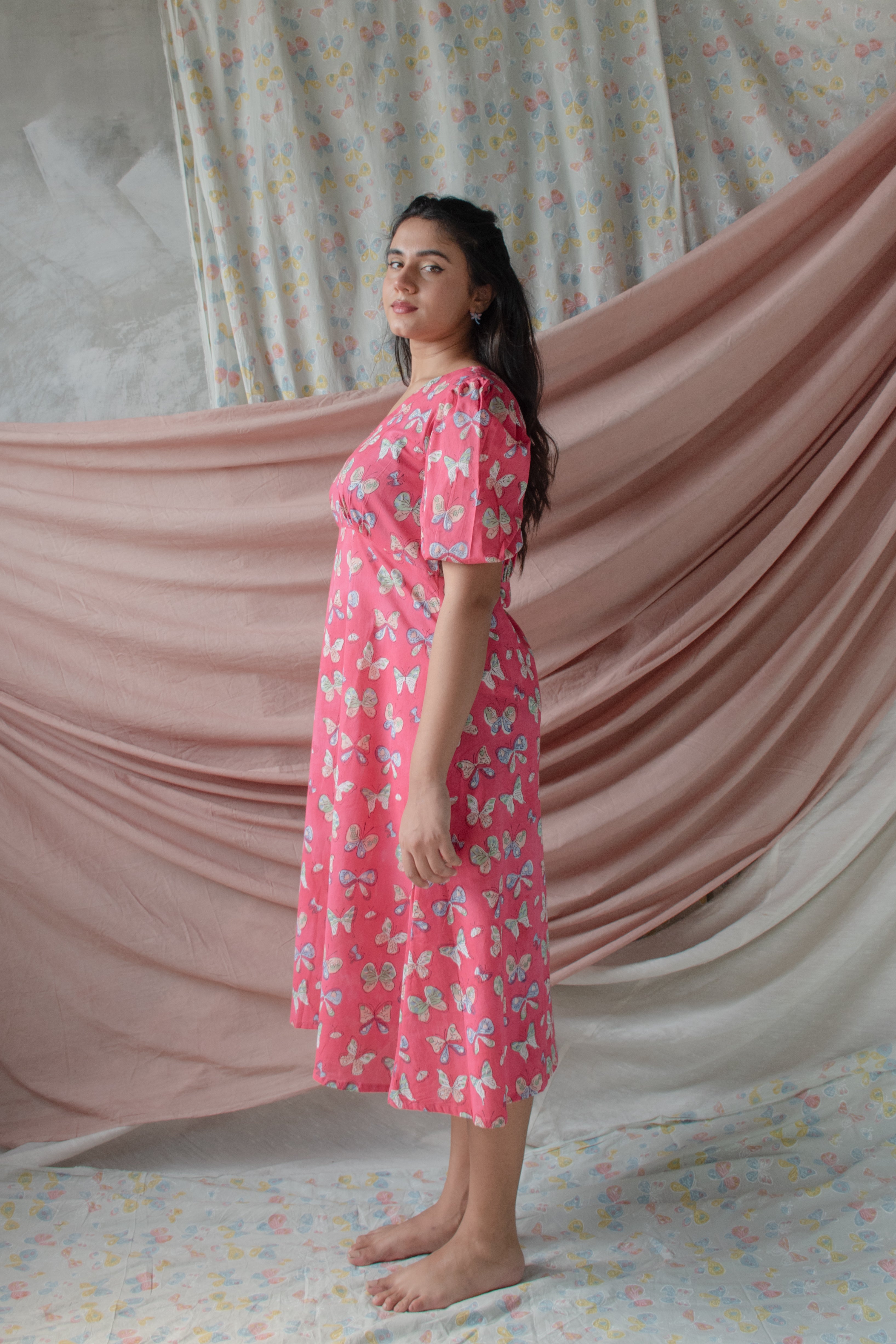 A burst of sunshine and smiles — Happy Flutter is your go-to dress for carefree days and spontaneous joy. Hand block printed in soft cotton with playful butterfly motifs,...