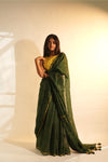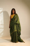 Inspired by divine gardens, Hariyali blooms with Krishna jaal motifs on lush green Chanderi. Gold foil details sparkle like festive lights, while the flowy silhouette with tassels makes it a joyful ode to tradition and celebration.