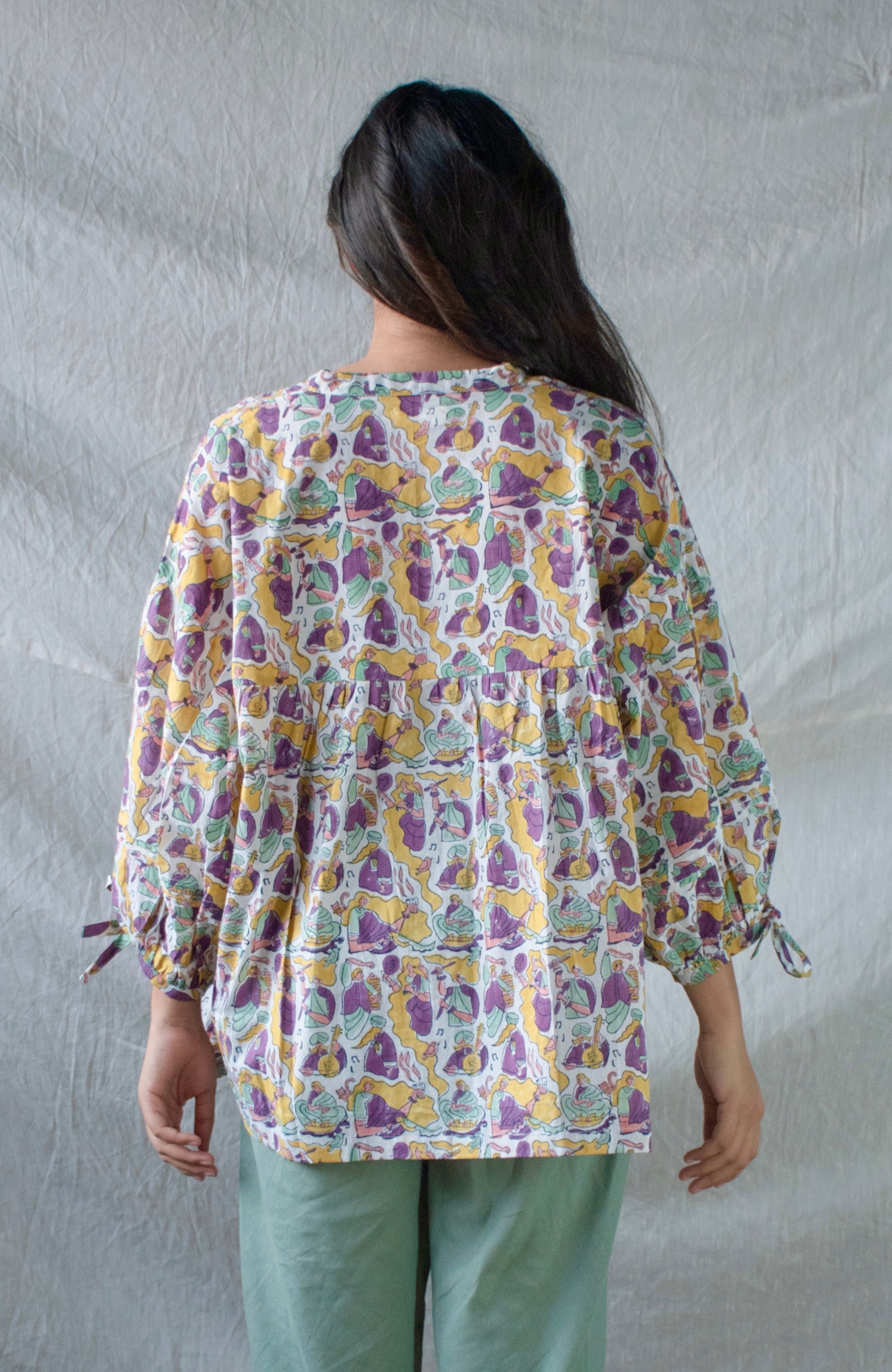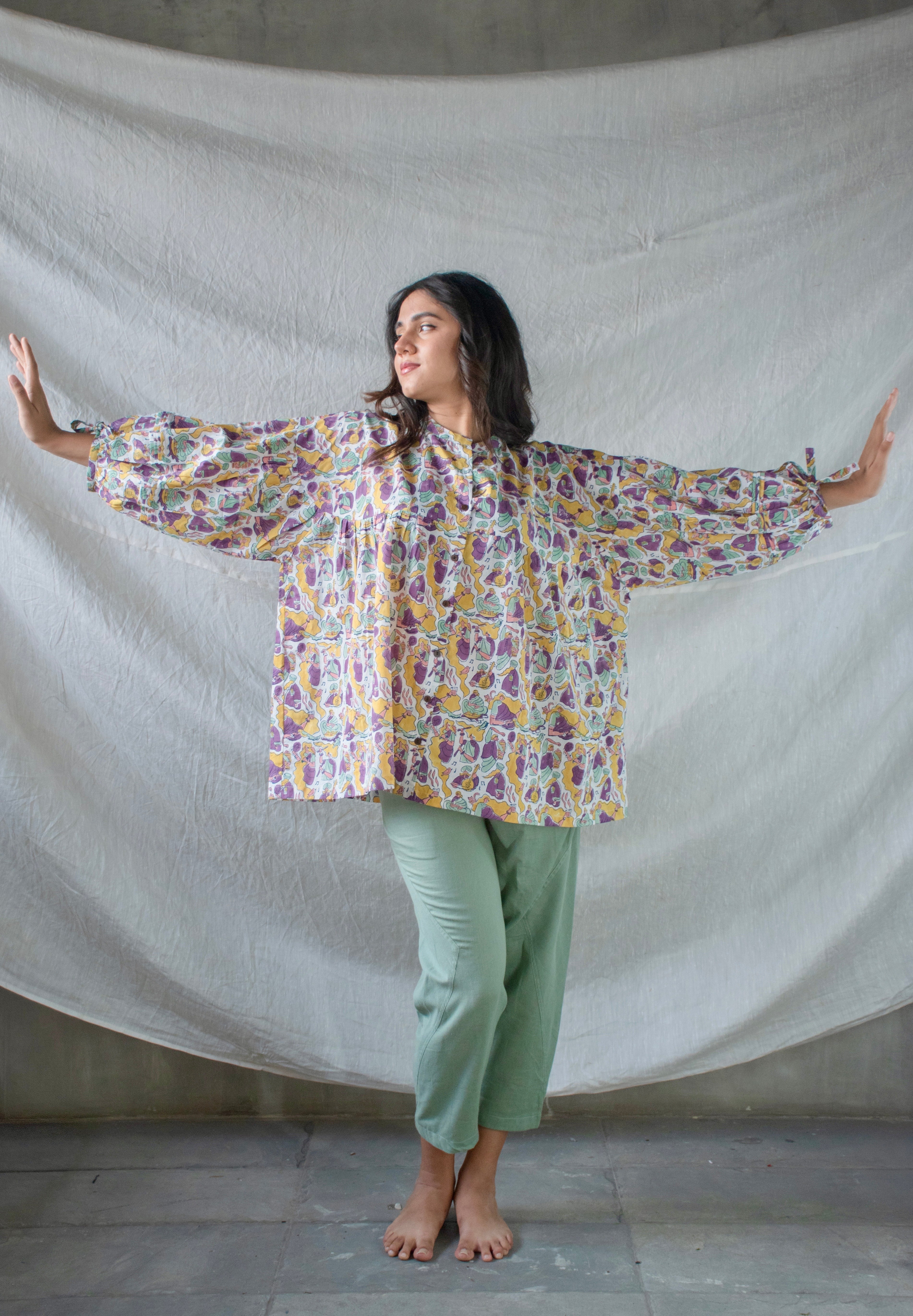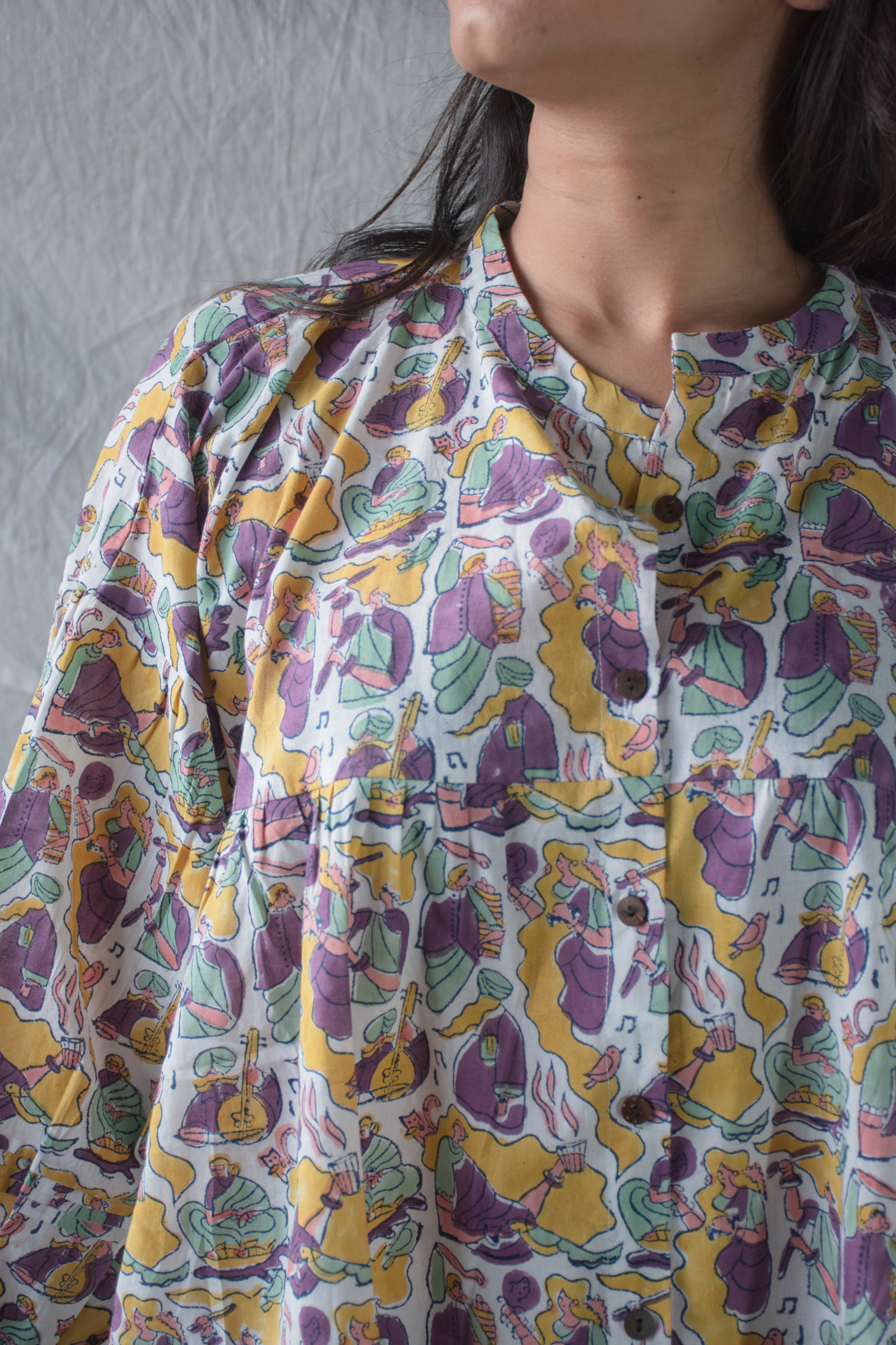 A celebration stitched in stories — Rang Yatra captures the rhythm and color of everyday India. Hand block printed with “People of India” motifs, this soft cotton dress is a journey through laughter, movement, and melody. With its loose, easy fit in playful purple and yellow, it feels like sunshine meeting tradition — lighthearted, rooted, and joyfully alive.