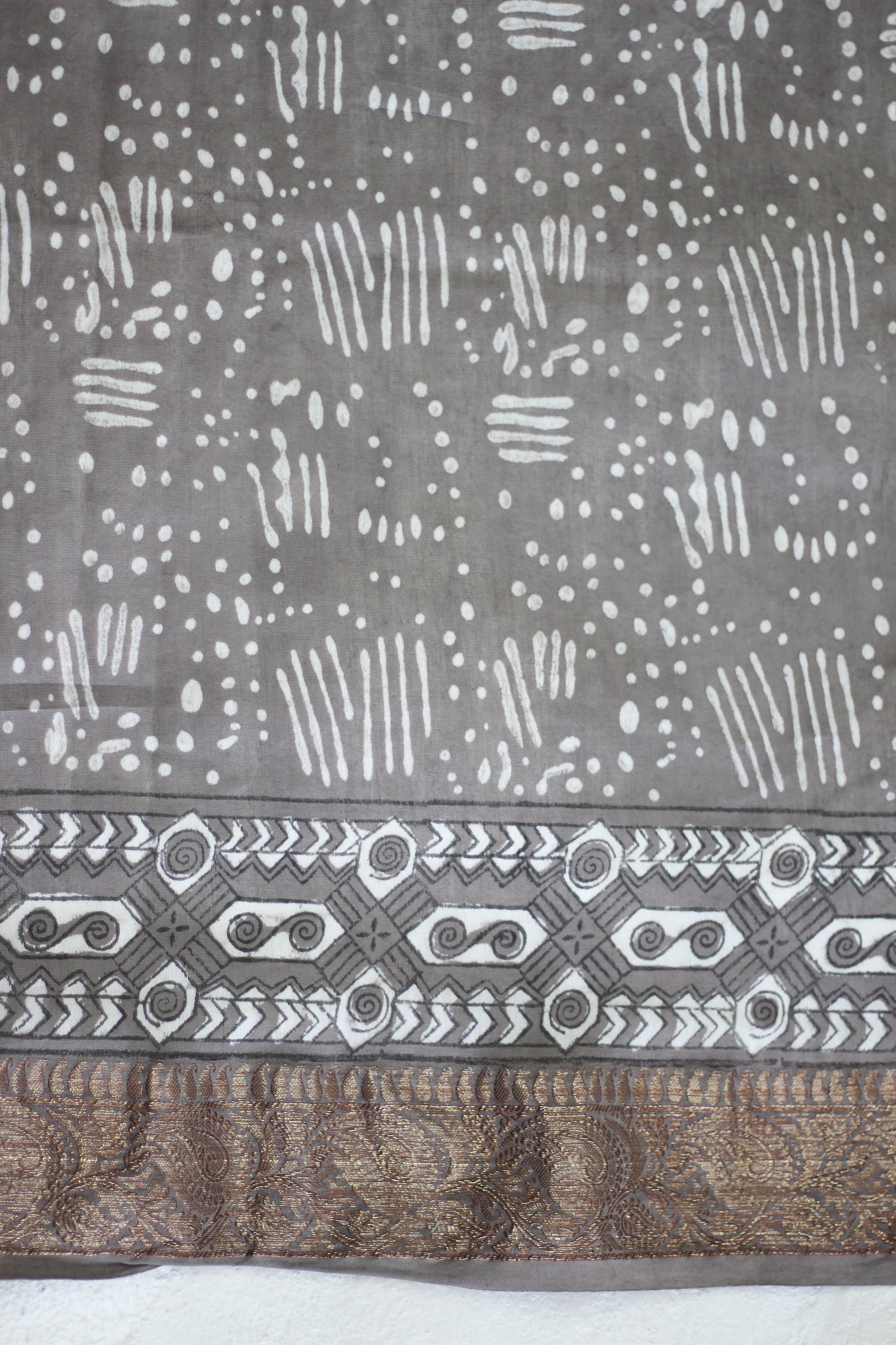 Dabu in Gray Jaal-Chanderi Saree