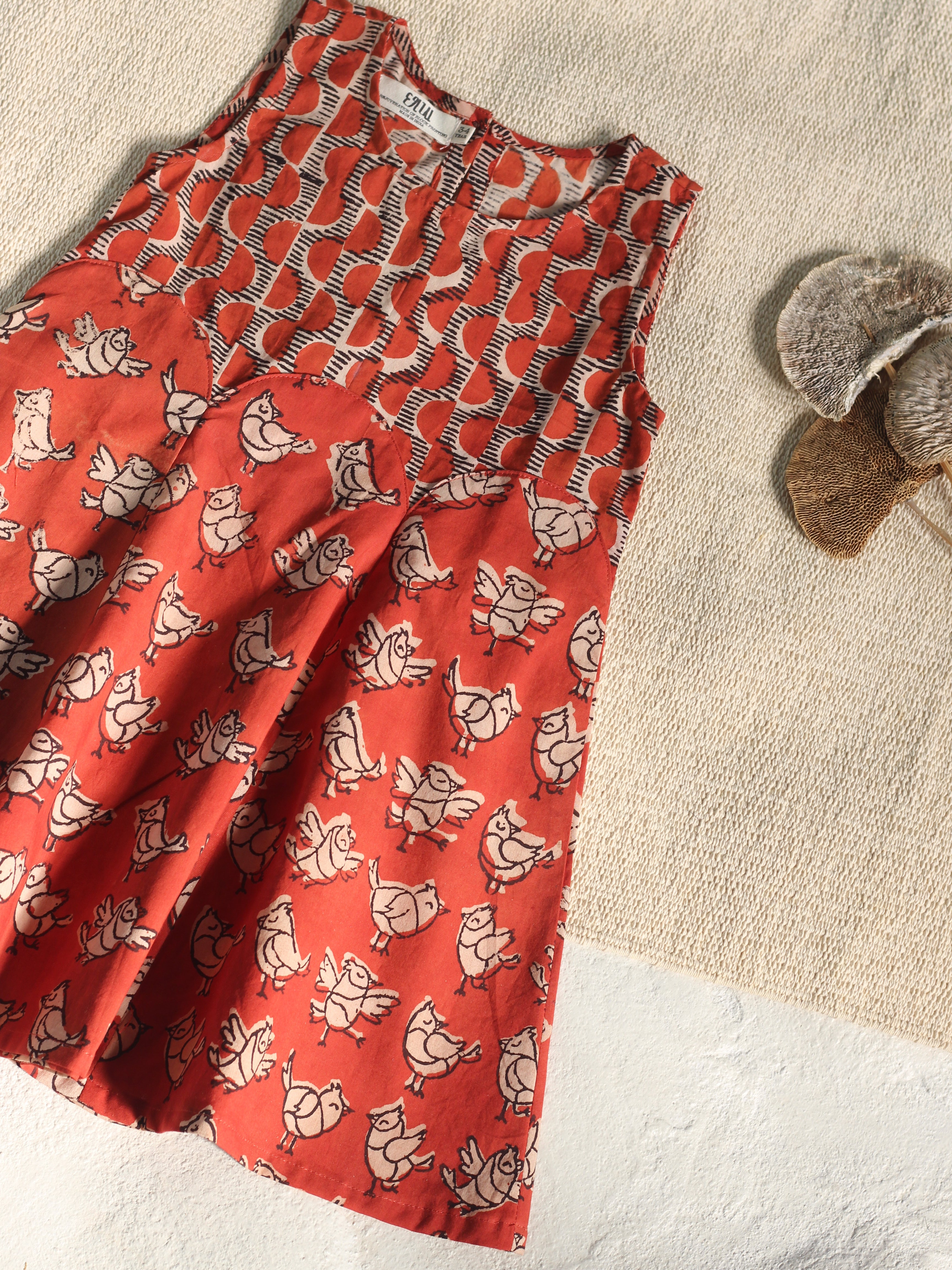 Fluttering with charm, this maroon dress celebrates the beauty of birds through traditional hand block printing. Crafted from soft cotton, it's perfect for those who love nature-inspired style with a playful twist. The rich maroon shade pairs beautifully with intricate bird motifs, creating a piece that's both timeless and whimsical. Comfortable, breathable, and distinctly artistic—ideal for everyday wear with personality.